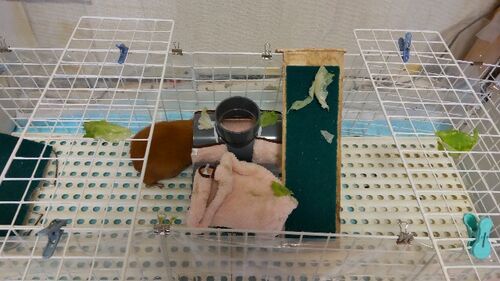 先日ご紹介した、今にも倒壊しそうな手作り運動場ですが… こむぎが全速力で駆け回って満喫してくれるようになりました。 夕方の野菜食事はいろんなところに隠して、自分で見つけてもらいます。 前にも書きましたが、動物の本能として、えさを自分で見つける…
